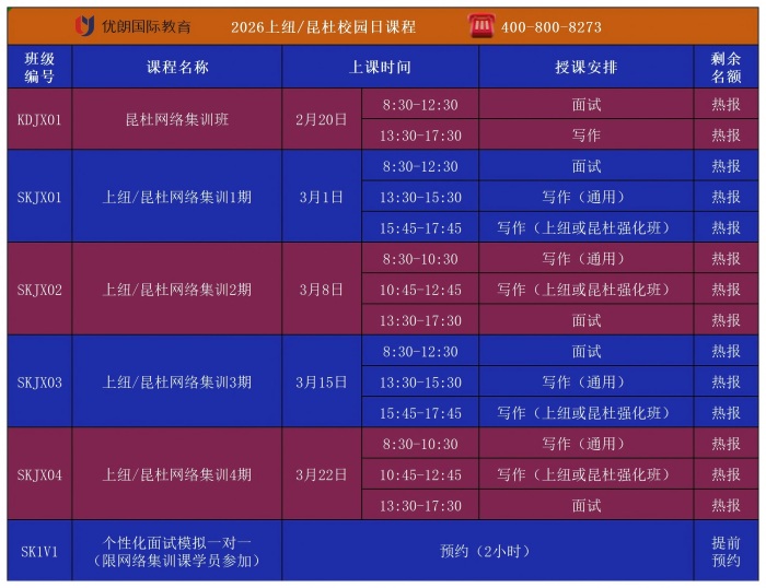 昆杜校园日要求学生在30分钟内就指定的主题写一篇英语短文。作为唯一的笔试内容,限时写作在面试中的权重必然不低,因为限时写作不仅仅考察了语言的应用能力、还能体现出考生对于模拟课堂话题理解的深度、对于阅读材料的分析能力、甚至是批判性思维的能力。因此,建议考生在面试准备的时候,对于政治、科技、金融、教育、经济等几个方面,应该多阅读一些近期的时事新闻评论。